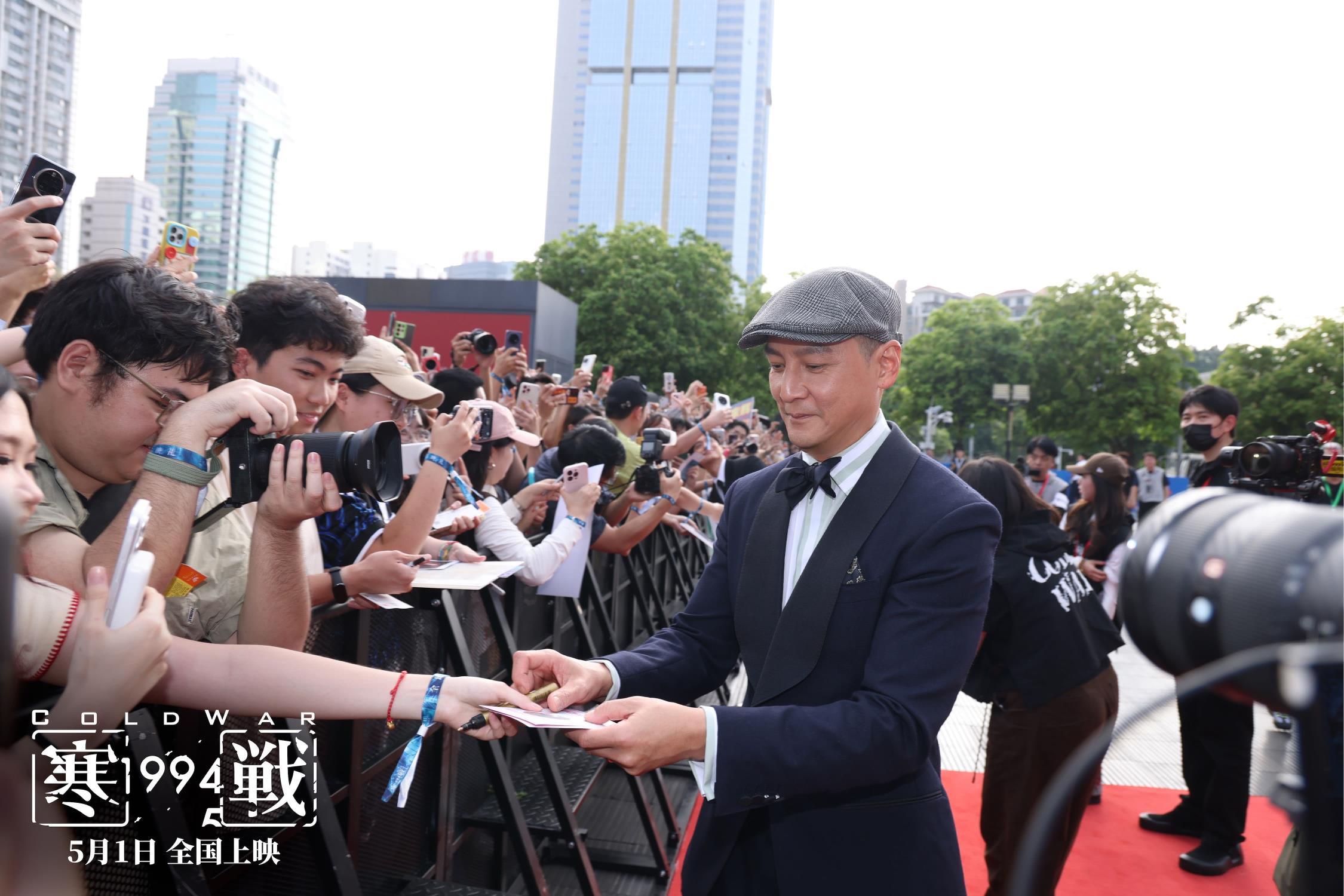 五一档最受期待的影片《寒战1994》昨日在深圳罗湖区深圳大剧院举办全球首映礼。盛典启幕,一场星光熠熠的红毯仪式率先上演,“寒战”宇宙的新老朋友们齐聚一堂,共赴这场跨越十年的经典之约。红毯上,影片出品人及监制、安乐影片总裁江志强,影片监制、安乐电影制作执行董事何韵明,影片执行监制、儒意电影助理总裁及影视总经理杨海、编剧及导演梁乐民、摄影指导潘耀明依次亮相;“寒战”宇宙特别嘉宾杨采妮、李子雄惊喜现身,熟悉的面孔瞬间唤醒了埋藏十年的“寒战”记忆;王丹妮、廖子妤与观众“比心饭撒”,现场欢呼声不断;吴慷仁、谢君豪分享合作心得,言语间尽显搭档的默契共鸣;吴彦祖和刘俊谦现场复刻了电影里拔枪对峙名场面,眼神凌厉、气场瞬间拉满;周润发携夫人陈荟莲,与郭富城、梁家辉联袂亮相,更是将现场气氛推至最高点,令粉丝忍不住感慨:“简直是法拉利开会,影帝们风采依旧!”更有影迷在网上直呼:“这才是真正的世纪同框,我宣布这是今年最有含金量的红毯!”